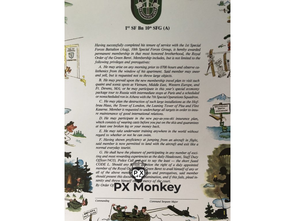 Originální nevyplněný pamětní list 1/10 SFGA Flint Kaserne, Bad Tolz. Formát A3.