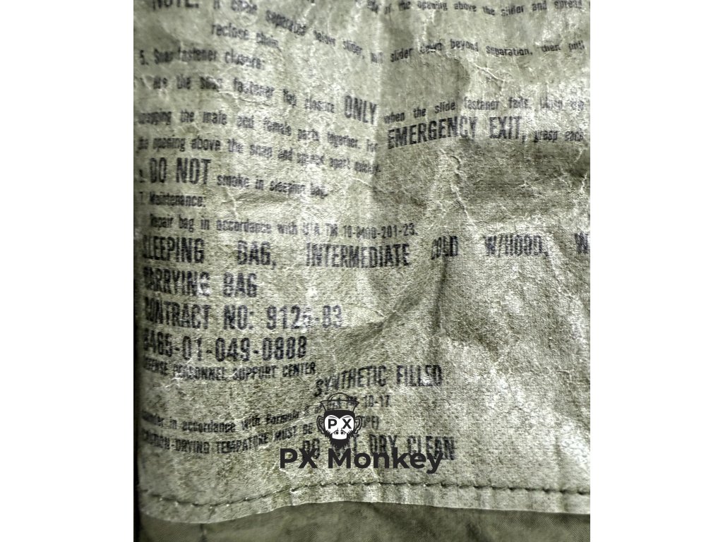 Lehce použitý spací pytel Intermediate Cold Weather Sleeping Bag. Rok výroby 1983. Pěkný stav. Zip je funkční, druky nejsou vytrhané.