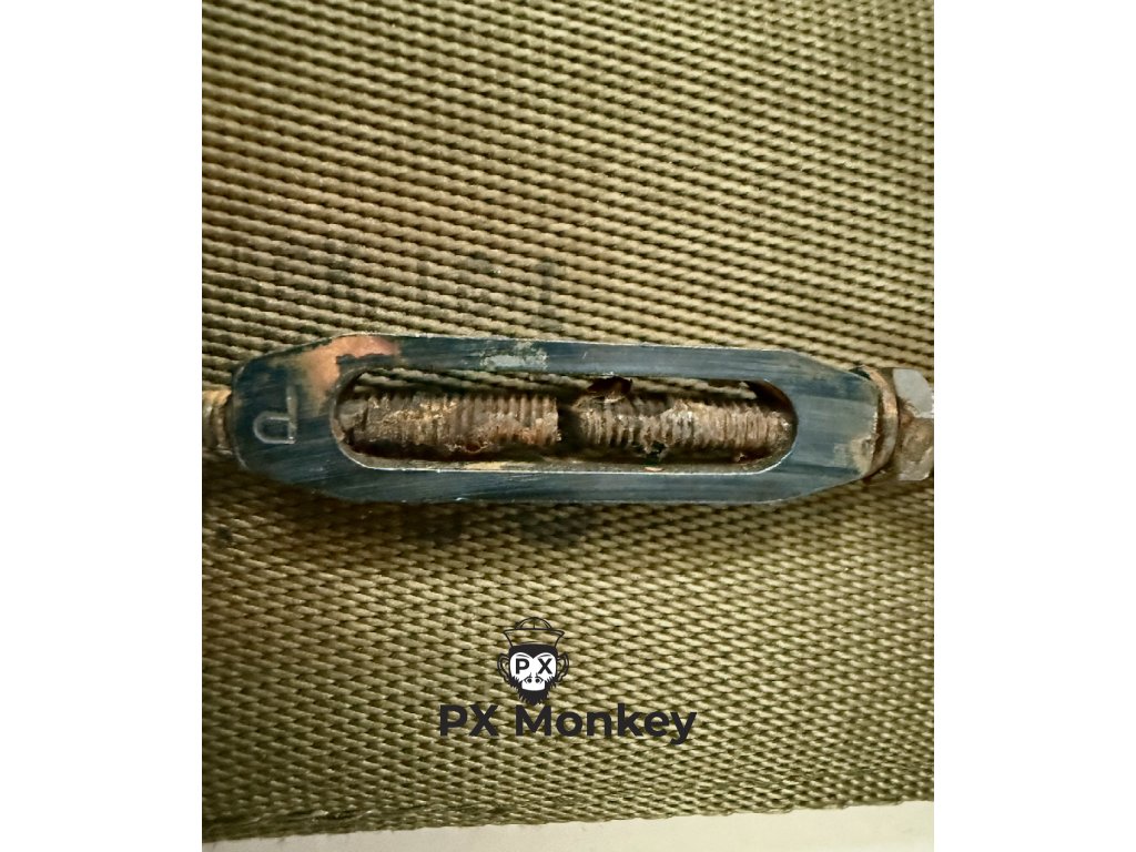 Bederák (Kidney Pad): To nejcennější na setu. Jedná se o původní LC-1 model s kovovým šroubovým napínákem (Turnbuckle) uprostřed. Tento systém umožňoval přesné nastavení, ale později byl pro složitost nahrazen. Napínák je funkční.