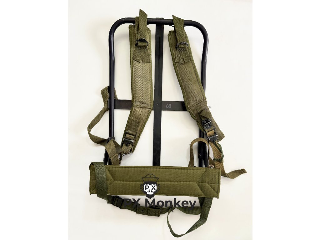Stav: Rám (výborný), Bederák (vzácný LC-1), Popruhy (použité), Waist popruh (NOS).
