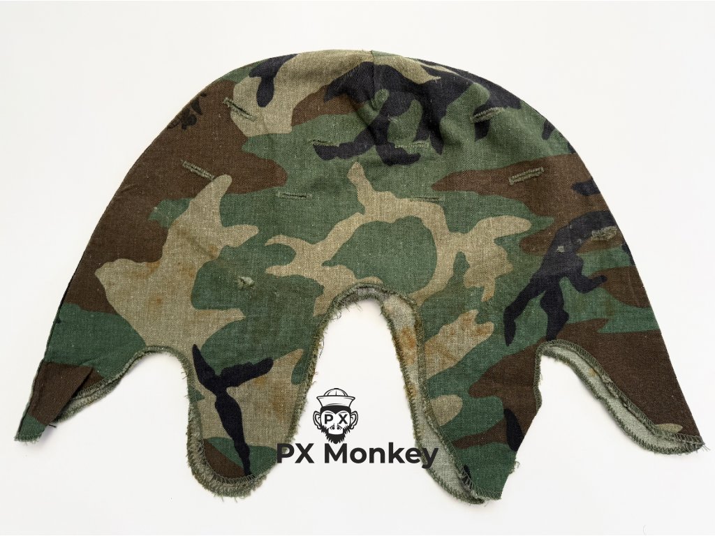 Stav "Battle Worn": Potah je vybledlejší než skladové kusy a nese autentické stopy používání. Na látce jsou viditelné oranžové/hnědé skvrny, které vznikají dlouhodobým kontaktem s ocelovou helmou (M1 Steel Pot). Pro sběratele realismu je toto žádaný detail ("Salty look").