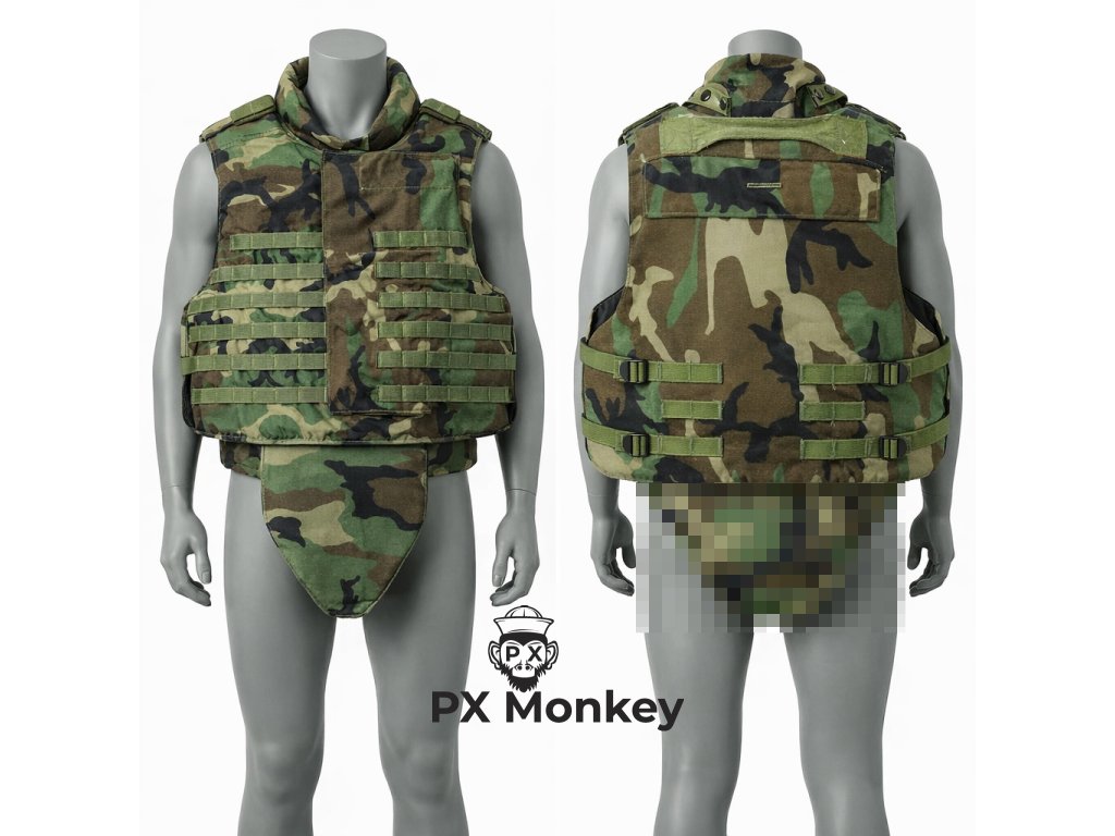 Nabízíme k prodeji naprostý sběratelský "Svatý grál" – originální balistickou vestu IBA (Interceptor Body Armor)typu OTV (Outer Tactical Vest). Vesta je v klasickém maskování M81 Woodland se zeleným vnitřkem. Tento kus je výjimečný tím, že je v naprosto nepoužitém stavu (New Old Stock). Hlavní sběratelský tahák: Celá vesta je kompletně sčíslovaná (Matched Serial Numbers). Obal vesty, přední balistické vložky i zadní vložka mají stejné sériové číslo, což dokazuje absolutní autenticitu a kompletnost setu. Set je kompletní a obsahuje: