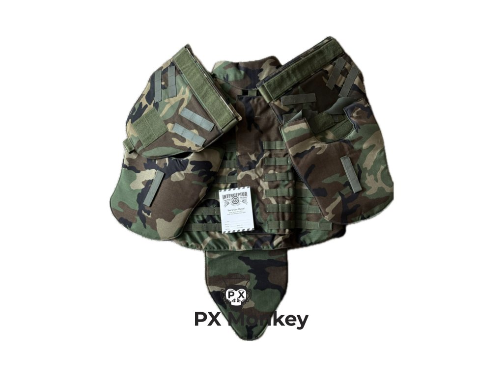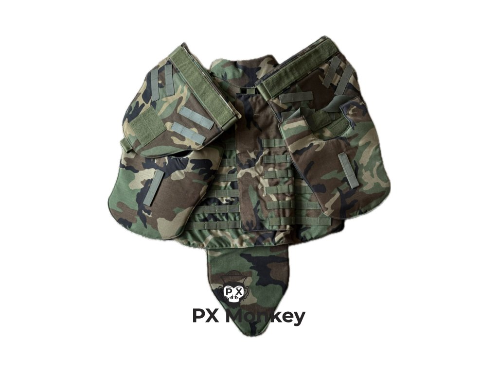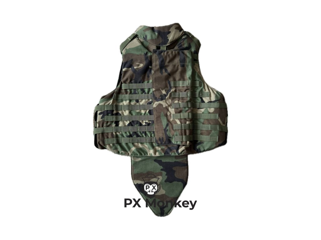 Nabízíme k prodeji naprostý sběratelský "Svatý grál" muzejní kvality – originální balistickou vestu IBA (Interceptor Body Armor) typu OTV (Outer Tactical Vest). Vesta je v klasickém maskování M81 Woodland se vzácnějším raným černým vnitřkem. Tento kus je výjimečný tím, že je v naprosto nepoužitém stavu (New Old Stock / Deadstock). Vyrobeno proslulou společností Point Blank Body Armor pod kontraktem z roku 1998 (DAAN02-98-D-5006). Hlavní sběratelský tahák: Celá vesta je kompletně sčíslovaná (Matched Serial Numbers). Obal vesty, přední balistické vložky, zadní vložka, límec a chrániče krku mají stejné sériové číslo, což dokazuje absolutní autenticitu a kompletnost setu. Set je ultimátní a obsahuje: