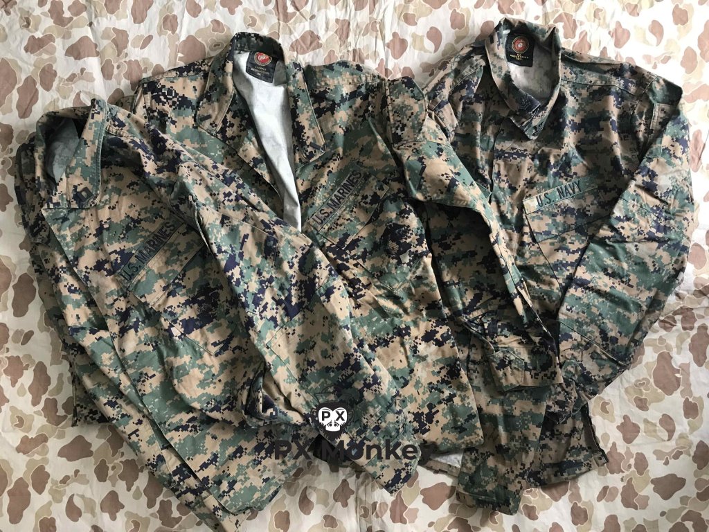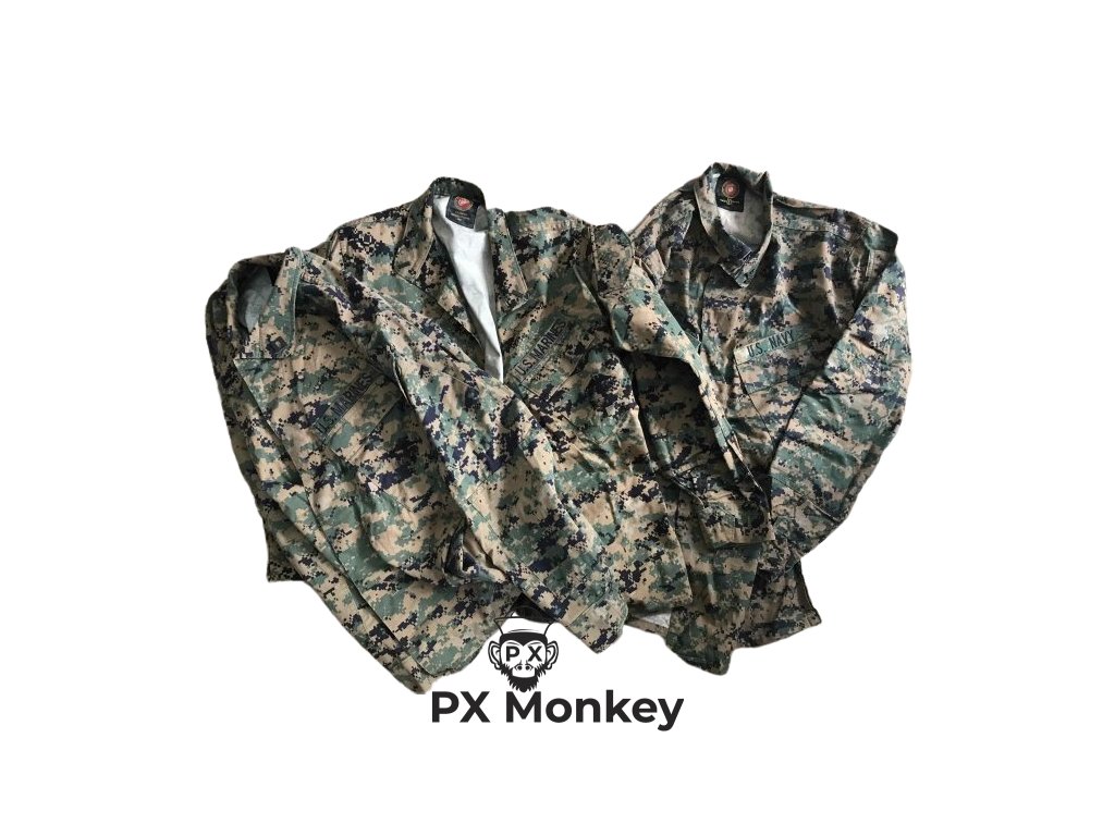 Blůza v maskování MARPAT Woodland s odznaky na límcích.