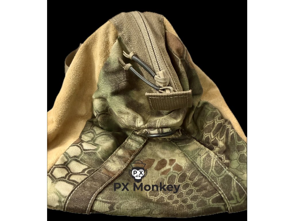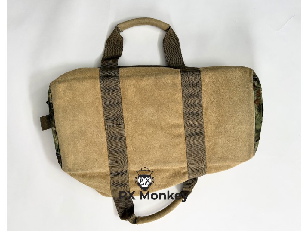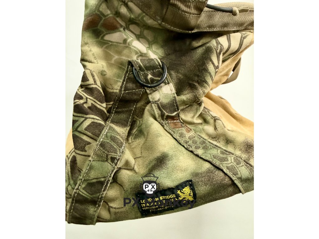 Material: Der obere Teil besteht aus Cordura im Kryptek Highlander Muster. Der Boden und die unteren Seiten sind aus robustem, sandfarbenem Wildleder (Suede) gefertigt. Eine sehr seltene und stilvolle Kombination.