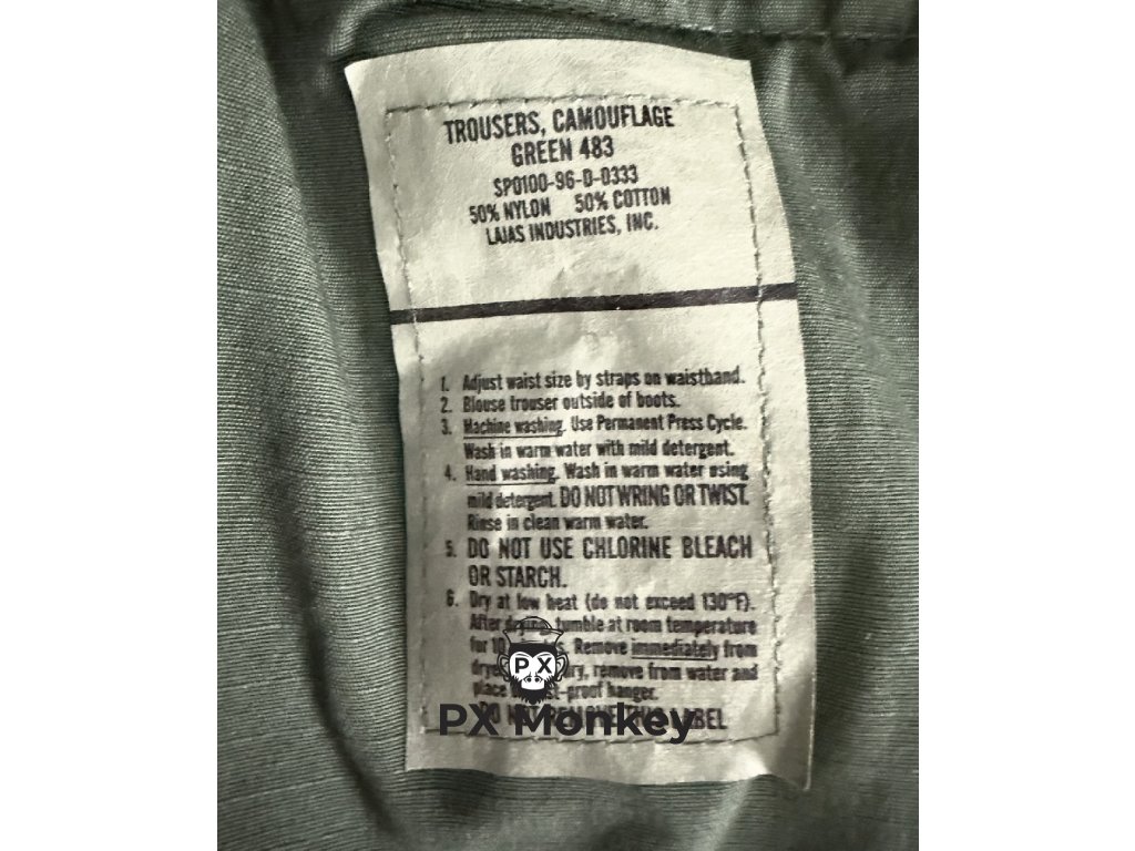 Material: Gefertigt aus 50/50 NyCo Ripstop. Während die meisten olivgrünen US-Hosen aus schwerer Baumwolle waren, ist diese leichte Ripstop-Version in "Green 483" sehr selten und wurde meist an US Navy Spezialkräfte oder für OPFOR-Einheiten ausgegeben.