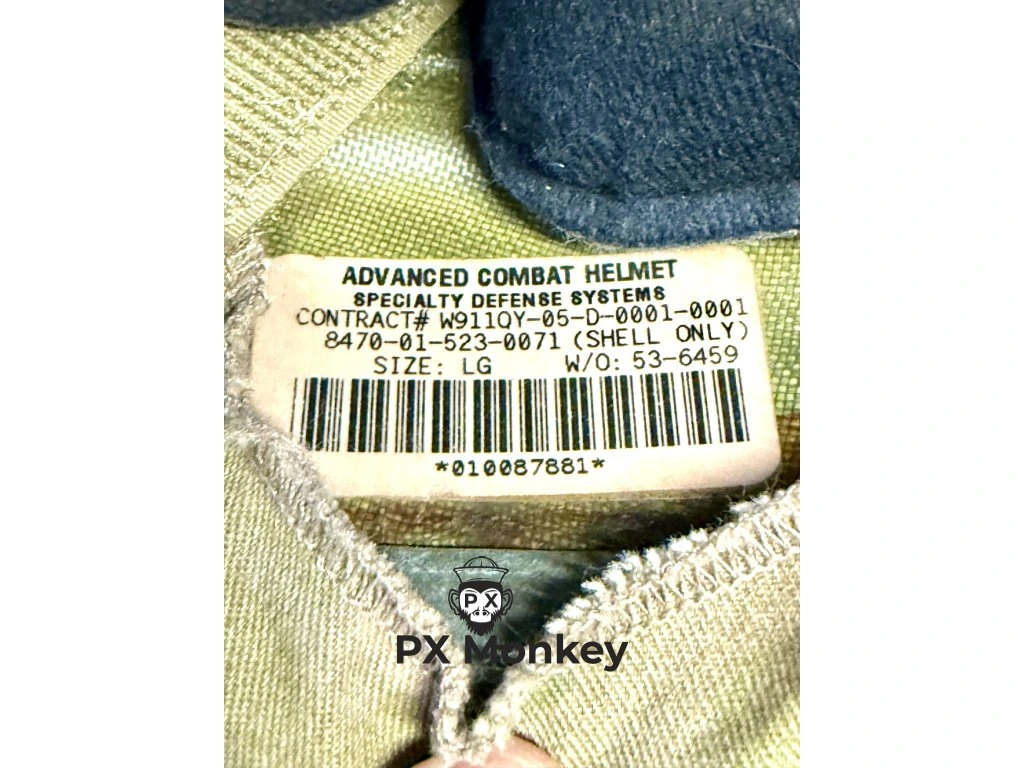 Zum Verkauf steht ein echtes Sammler-Highlight der modernen Militärgeschichte: Ein originaler früher taktischer US Army Advanced Combat Helmet (ACH). Es handelt sich um ein originales Stück Geschichte aus dem sehr frühen 2005er Vertrag (W911QY-05-D-0001) by Top-Hersteller Specialty Defense Systems (SDS). SDS-Ausrüstung ist unter Sammlern moderner Militaria für ihre kompromisslose Qualität hoch begehrt. Der Helm ist in der gefragten Größe Large und verfügt über einen Multicam-Tarnbezug. Er weist eine wunderschöne, authentische Feldpatina auf, die dem Stück einen unglaublichen Charakter verleiht und seine echte "battle-proven" Geschichte bestätigt. Dies ist ein volles taktisches Setup, 100% komplett wie auf der Schaufensterpuppe abgebildet: