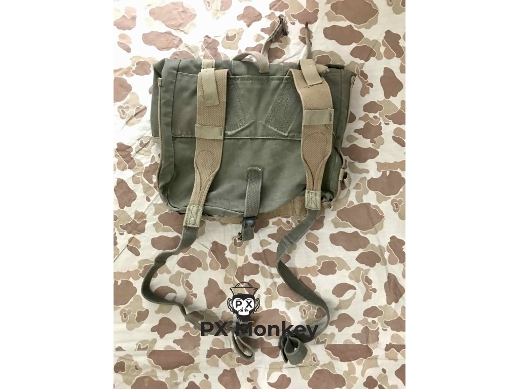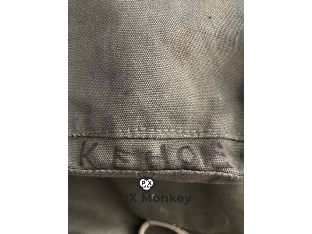 USMC Haversack und Knapsack aus dem Koreakrieg. Der Haversack wurde 1952 hergestellt. Es gibt eine Reparatur auf einem der Kordelzugriemen siehe Foto. Knapsack ist in sehr gutem Zustand. Er ist vom ursprünglichen Besitzer signiert.