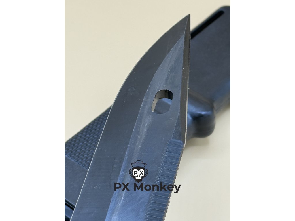 Wir bieten hier ein außergewöhnliches Stück für ernsthafte Messersammler an. Es handelt sich um eine Spezialversion des M9 Bajonetts vom US-Auftragnehmer Lan-Cay, ausgestattet mit einem massiven D-Guard (Knöchelschutz).Details: