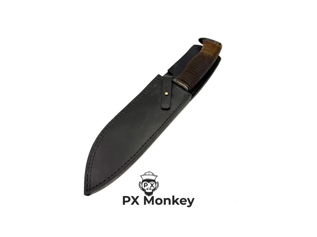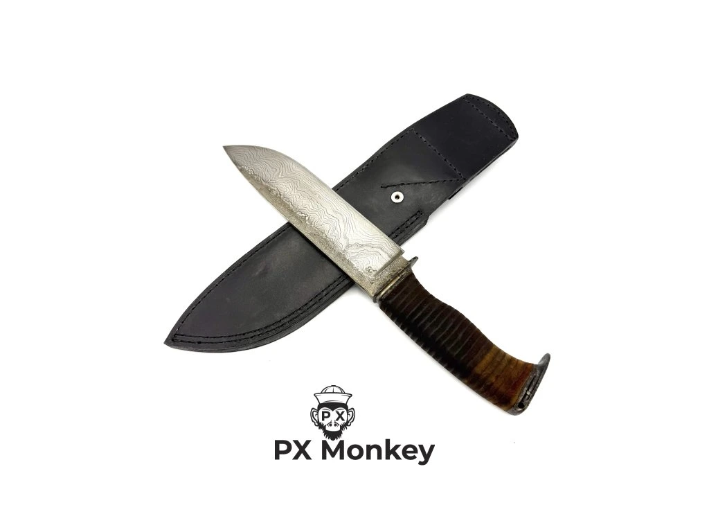 Handgeschmiedetes Damastmesser Bowie | Einzigartiger historischer Lederriemengriff | Massiv | #2