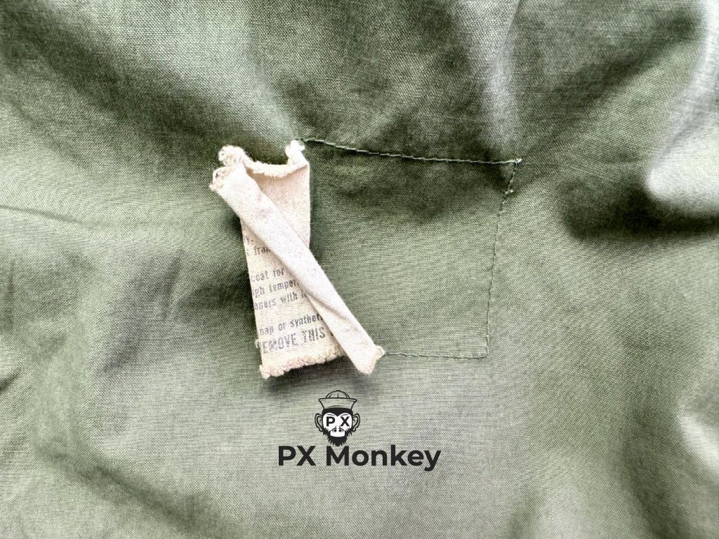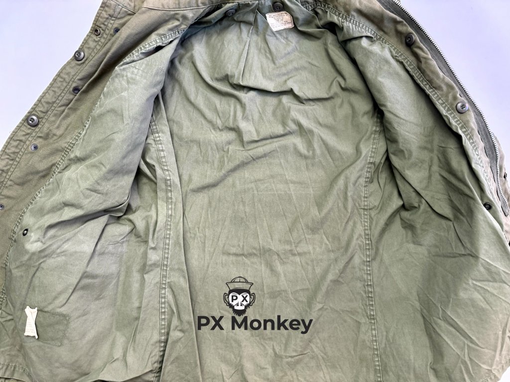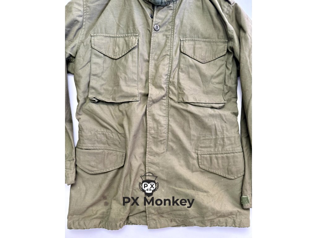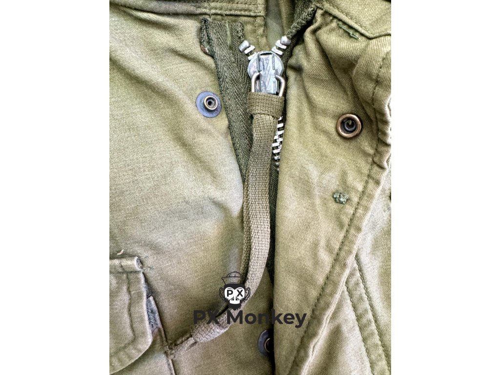 Gebrauchte PARKA M65 (FIELD JACKET), seltener Vertrag von 1967, als nur Sportmaster statt Sportmasters auf dem Etikett stand. Größe Small - Long.