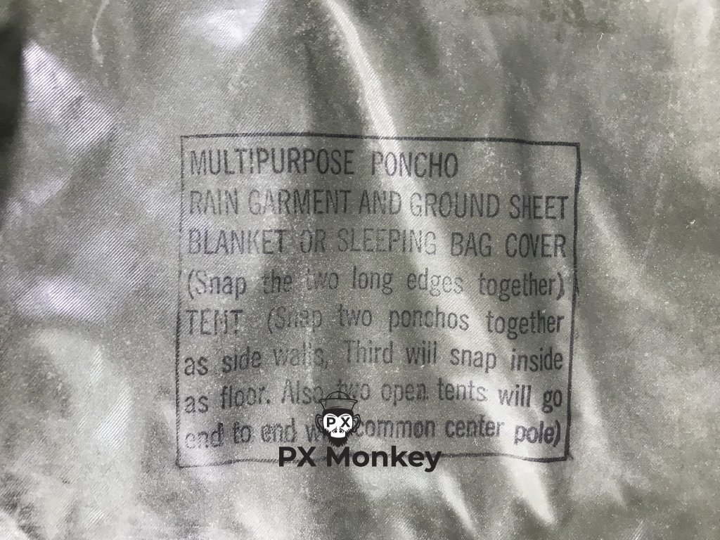 Doppelseitig gummierter Poncho. Lagerzustand, der Poncho ist noch mit einer Pulverschicht überzogen, um ein Anhaften zu verhindern.