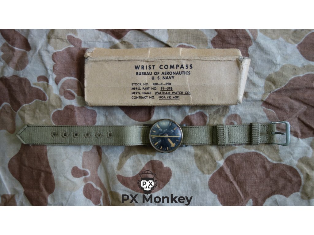 Luftkompass, der an USN-Piloten ausgegeben wurde. Kompass ist im Lager Zustand mit Original-Box. Die Nummer auf der Box entspricht der Nummer auf der Rückseite des Kompasses.
