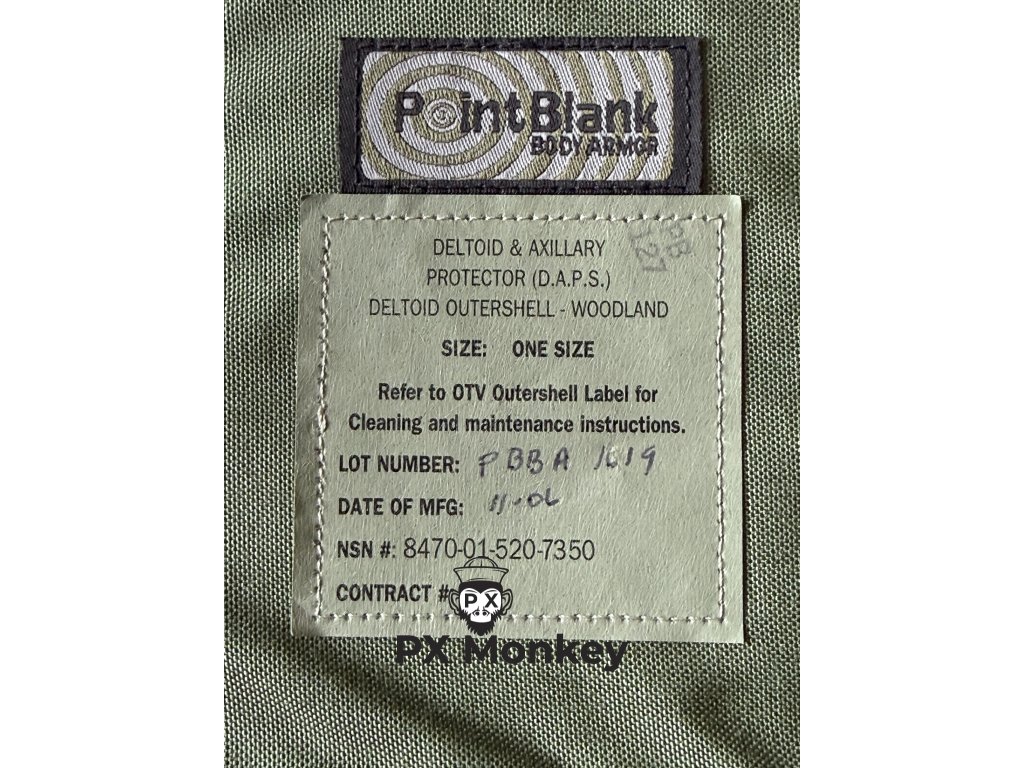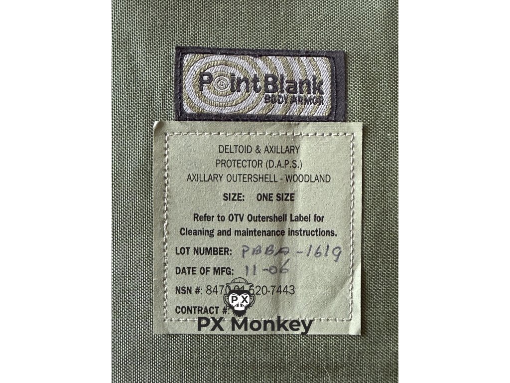 Complete DAPS System (Deltoid/Axillary Protective System): shoulder/axillary protectors. These components are extremely hard to find and are in unissued condition.