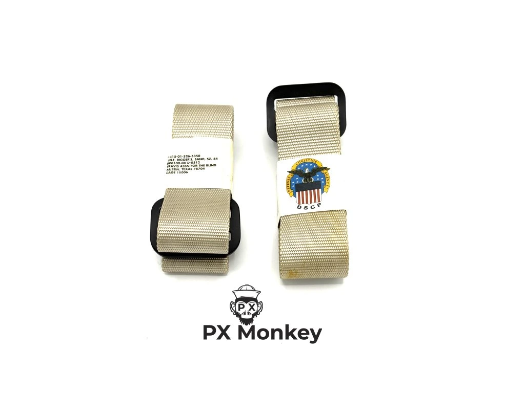 For sale is a true military surplus staple: an original US Army Riggers Belt (BELT, RIGGERS, SAND). On the rarity scale, this sits at a very solid 4/10. While web belts aren't impossible to find, sourcing a genuine military issue belt still sealed in its original 2004 plastic packaging (Contract SPO100-04-D-0312) is getting incredibly difficult. This is a 100% authentic piece from the height of the GWOT (OIF/OEF) era. Manufactured by the official government contractor TRAVIS ASSN FOR THE BLIND. The belt is constructed of heavy-duty nylon webbing in a Sand (tan) colorway, complete with solid metal hardware. Marked as size 44. This is a perfect item for collectors, GWOT reenactors, or anyone looking for an indestructible everyday carry (EDC) belt.