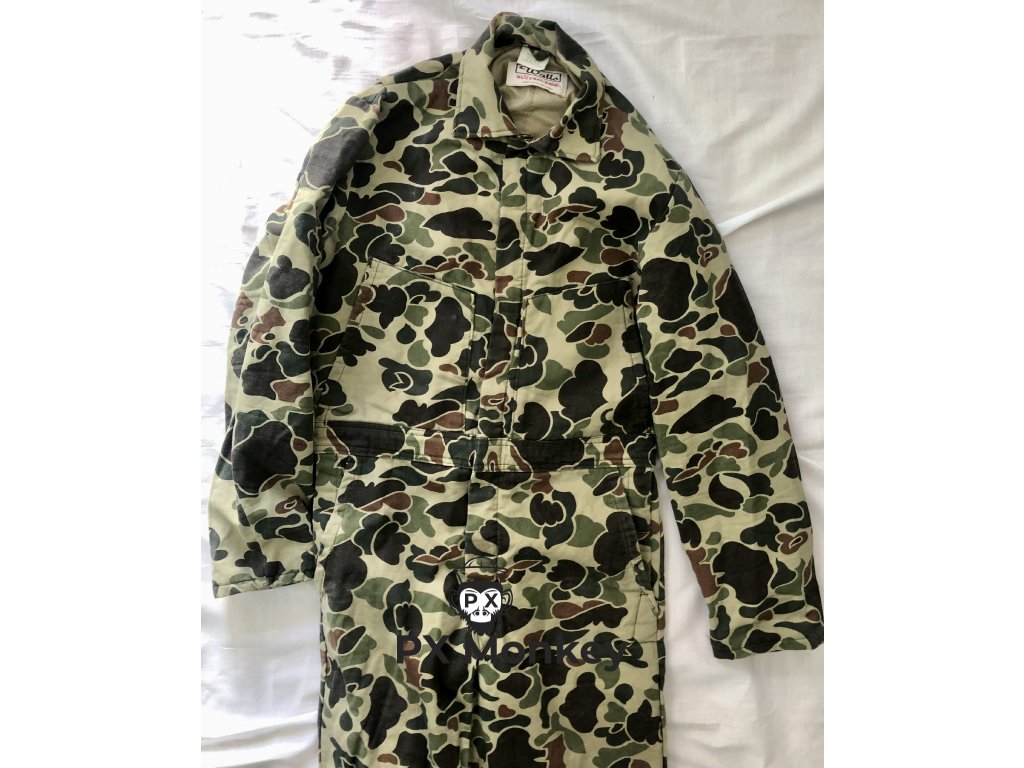 Duck Hunter camouflage jumpsuit. Commercial production USA. Size Medium Tall (Long). Overalls have insulated sleeves.