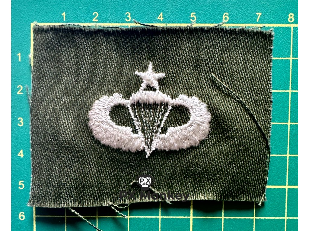 Used ERDL Coat, Man's, Tropical. On the shoulder is a patch 2nd B, 75th Infantry Ranger/Airborne. Above the pocket is a Basic parachutist badge. Size Medium Regular. Year of manufacture 1968.