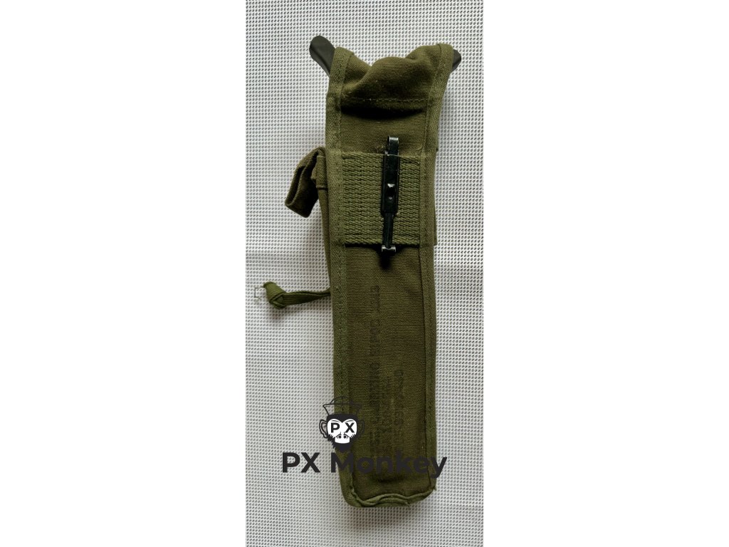 Unused bipod for M-16A1 rifle. The holster is also in unused condition, but is slightly dirty due to storage.