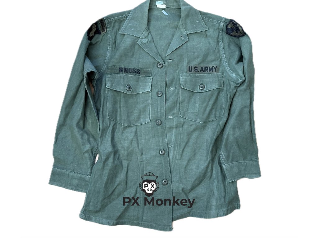 US Army OG-107 Shirt | 101st Airborne & ASA Combat Patch | Bross | 1970