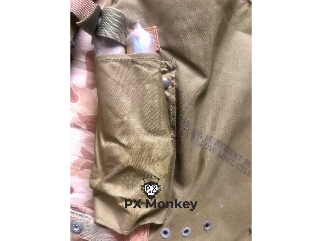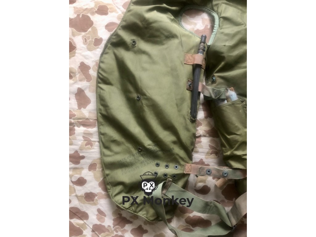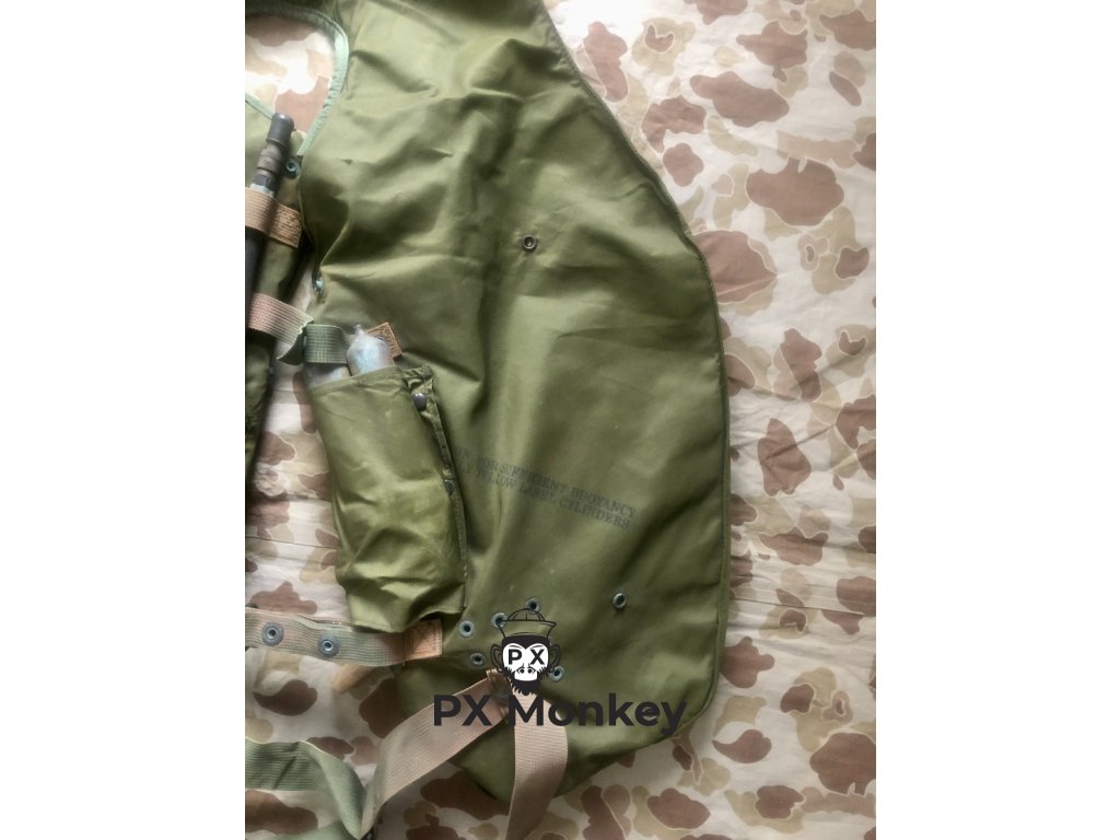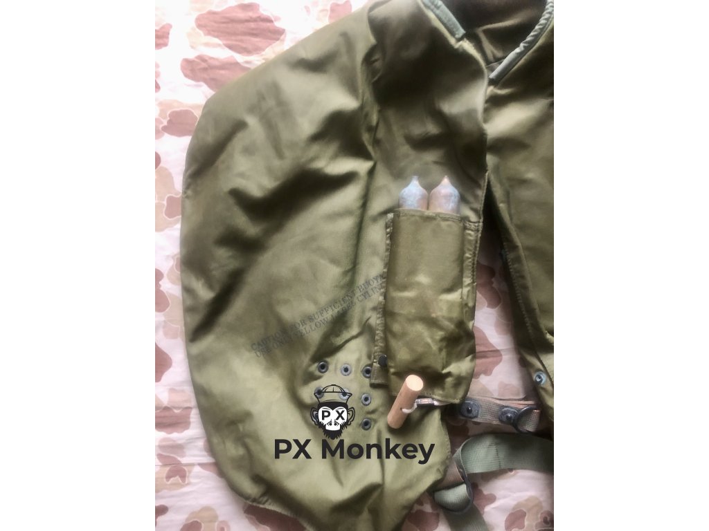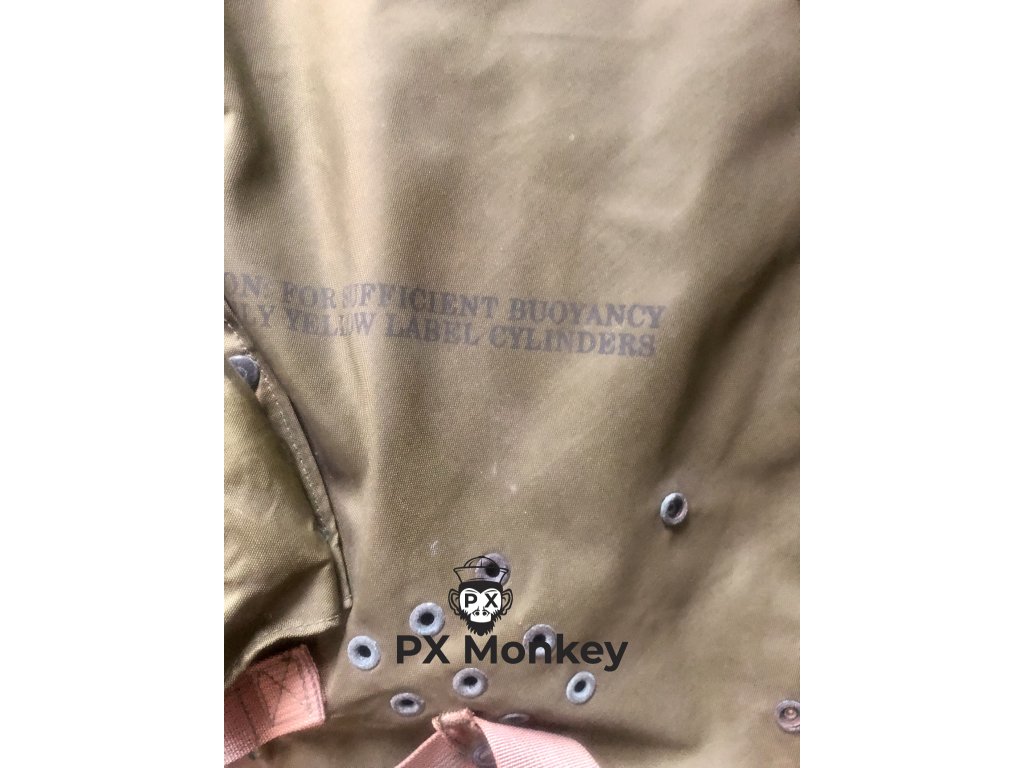 Lightly used US Navy Life Preserver MIL-L-21047 Ships. Year of manufacture 1973. The vest has a total of 4 "bombs" for CO2. The vest is used but in very nice condition.