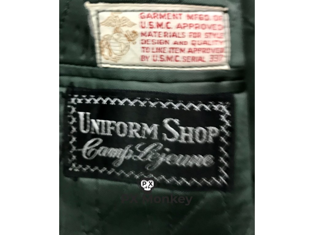 USMC Green Dress jacket with belt. Series 337. Size approximately corresponds to Small.