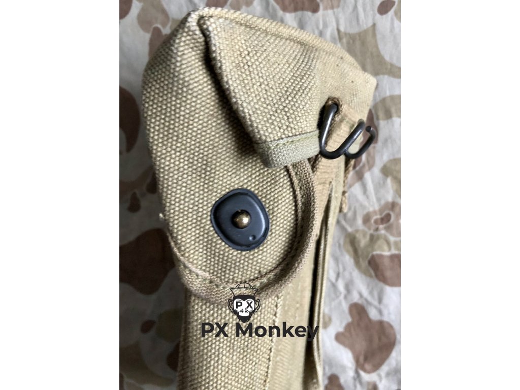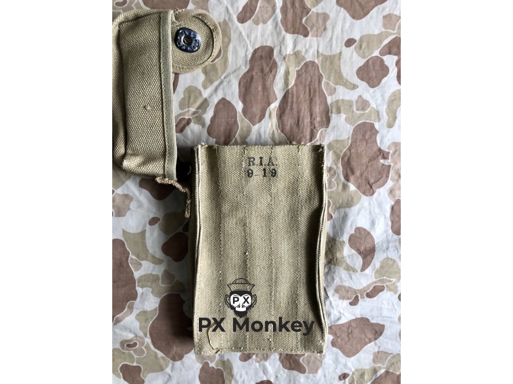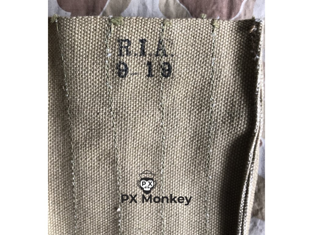 Unused bag for Pedersen Device. The Pedersen was an experimental accessory for the M1903 Springfield rifle, which allowed the firing of a pistol-type cartridge of 0.30 calibre (7.62 mm) in semi-automatic mode. The device was developed to allow an infantryman to convert "his rifle into a form of submachine gun or automatic rifle" in approximately 15 seconds.