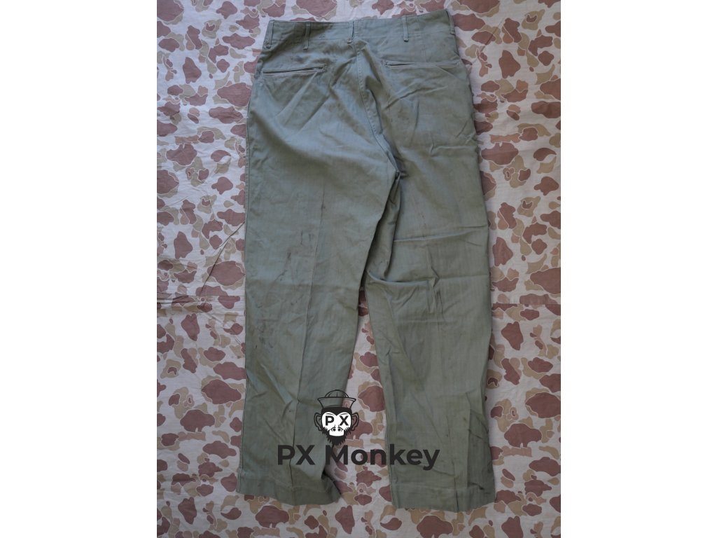 Kalhoty “THE FIRST PATTERN” HBT. Kalhoty jsou místy umazané od oleje, ale jinak v bezvadném stavu. velikost W32 x L31.