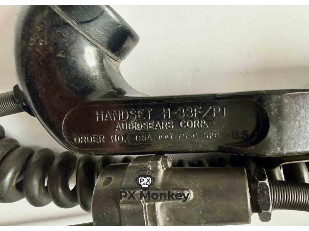 Sluchátko: Model H-33F/PT od výrobce Audiosears Corp. Dle kontraktu DSA 900-75-C-5116 vyrobeno v roce 1975 (kompatibilní dobová náhrada).