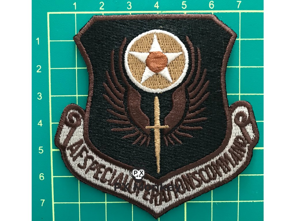 Nepoužitá nášivka US. Air Force Special Operations Command v pouštním provedení.