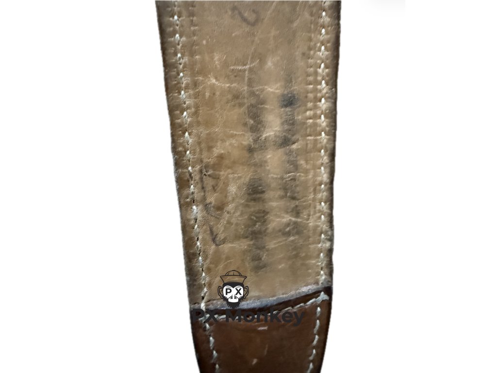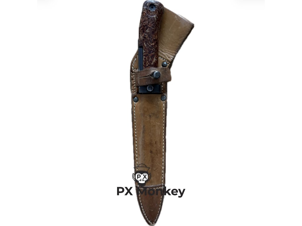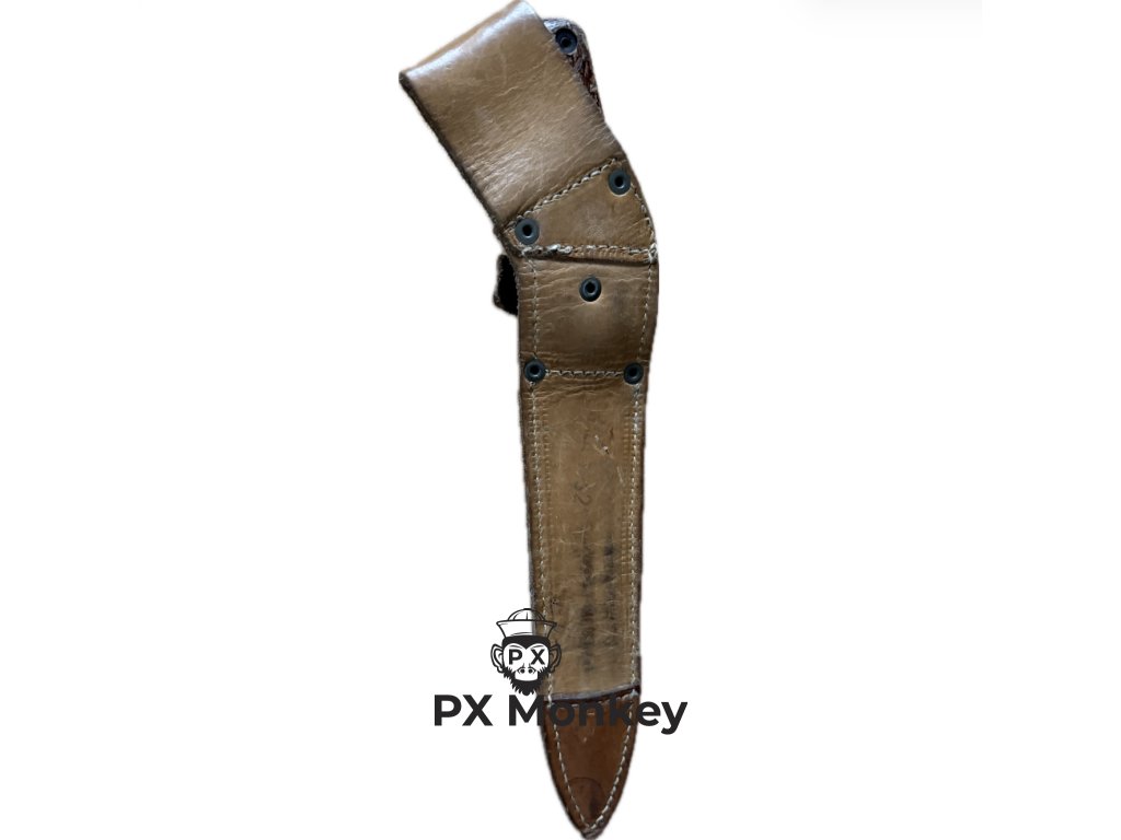 Čepel: Původní, nebroušená, s původním brynýrem/fosfátováním. Nese známky zasouvání do pochvy, ale bez zubů na ostří.
