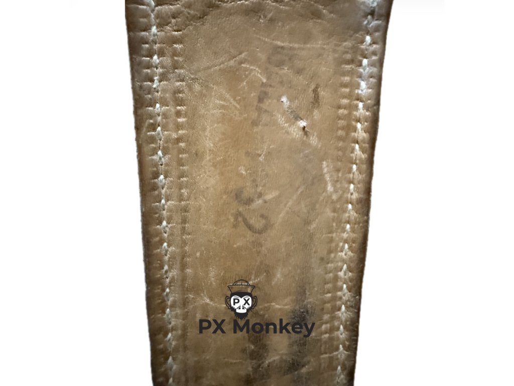 Pouzdro: Součástí je originální celokožené pouzdro (hladká kůže), šité nití. Kůže je měkká, nese patinu a stopy po inkoustových značkách, švy jsou pevné.