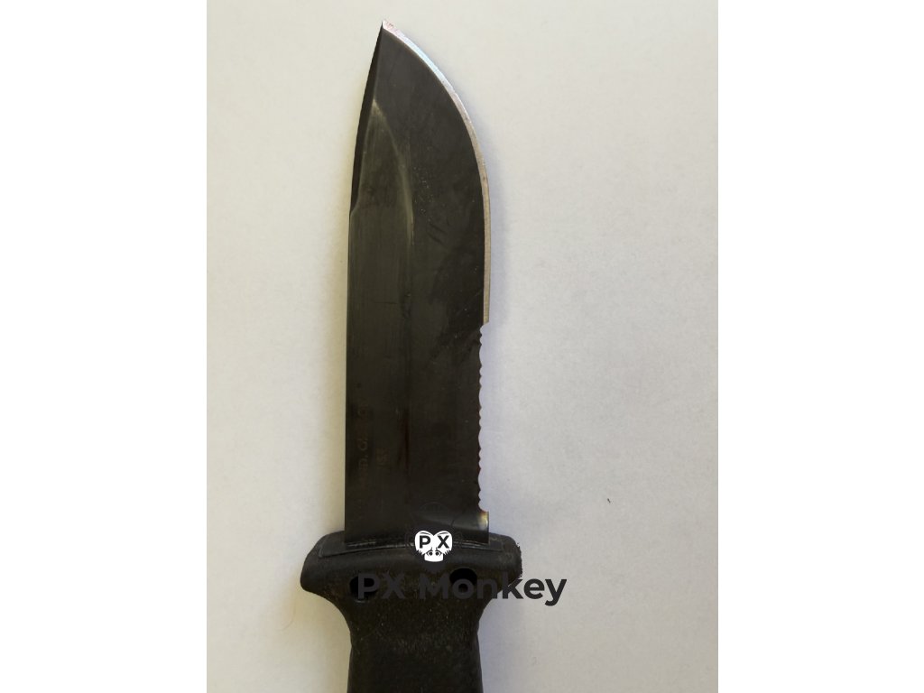 Stav: Použité / Surplus. Čepel nese povrchové škrábance a oděrky černění, ostří je zachovalé. Guma rukojeti může nést stopy používání.