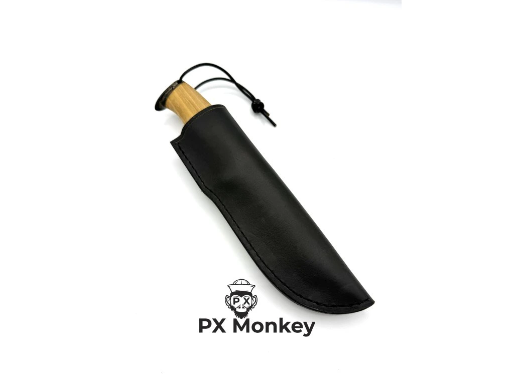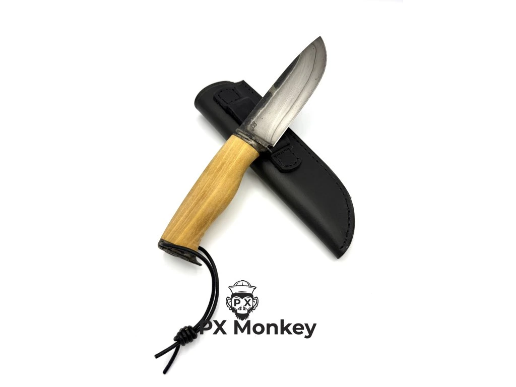 Přinášíme vám absolutní klenot nožířského řemesla – zrcadlový set dvou párových nožů, které byly stvořeny pro nošení v tandemu. Oba nože sdílejí identické masivní proporce (celková délka 260 mm, čepel 137 mm, hřbet 5 mm) a nekompromisní, takřka nezničitelnou konstrukci s roznýtovaným průběžným trnem. Každý nůž má však svůj vlastní, jedinečný charakter. První nůž je vykován z uhlíkové nástrojové oceli 19191 s mistrovským parciálním kalením na vzácný Hamon Utsuri. Toto kalení mu dává extrémní tvrdost ostří 61-62 HRC při zachování houževnatého hřbetu. Rukojeť je z ušlechtilého ořechového dřeva a nůž je usazen v masivním pouzdře pro praváka. Druhý nůž je kus oživené historie. Jeho čepel je vykována z listového pera (ocel 14260) legendárního československého nákladního vozu Praga V3S ("Vejtřaska"). Ocel, která si odsloužila své v nejtěžších podmínkách, nyní dostává nový život. Čepel má klasický hamon a tvrdost 57-58 HRC. Rukojeť tvoří odolné jabloňové dřevo a nůž doplňuje zrcadlové pouzdro pro leváka. Fazetky obou nožů jsou precizně broušeny na 24 stupňů. Záštity a patky jsou z tepané a ohněm patinované oceli. Upozornění: Jedná se o vysokouhlíkovou, "živou ocel". Čepele tak získají časem krásnou autentickou patinu a vyžadují občasné promazání – občasné uříznutí dobrého salámu je tou nejlepší péčí!