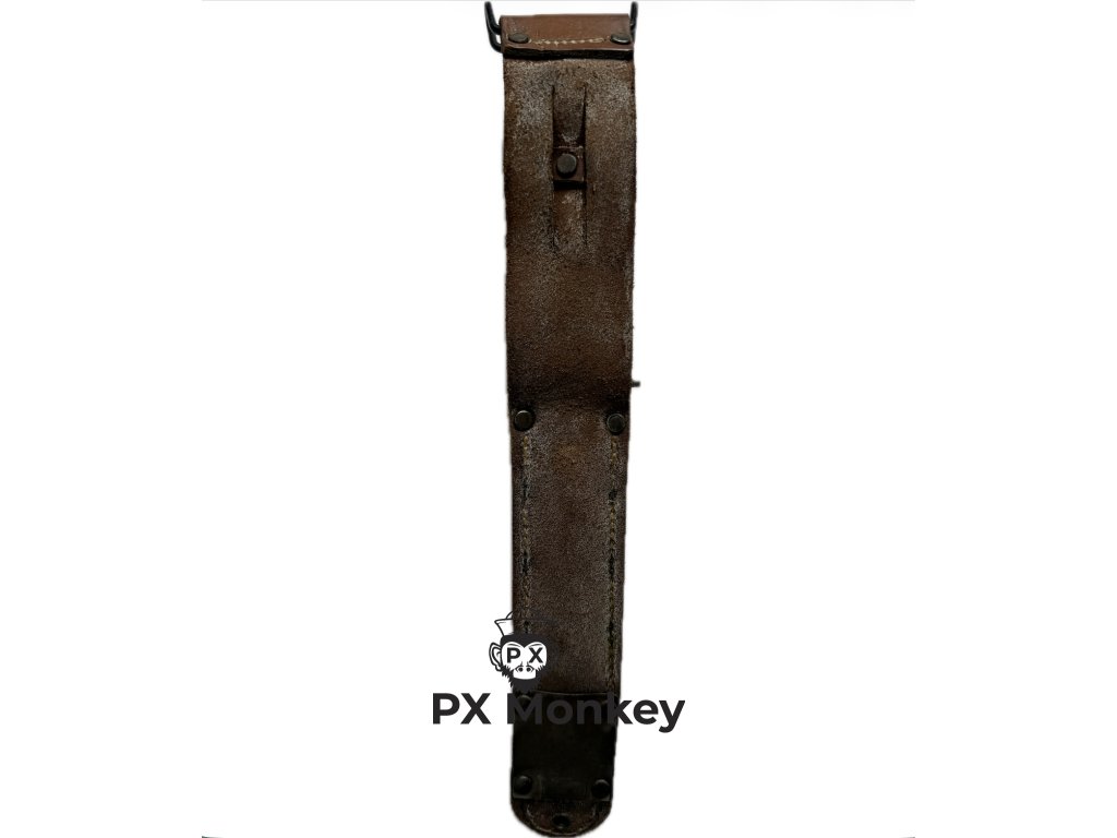 Stav zboží: Vynikající sběratelský stav. Nůž je použitý, ale s velkou péčí. Na rozdíl od většiny dochovaných kusů má rukojeť perfektní, neseschlou kůži, kroužky jsou pevné a nemají vůli. Čepel nese stopy používání, ale značení je čitelné. Pochva M6 je ve velmi pěkném stavu, kůže je pružná, švy drží a chybí časté praskliny či poškození, které u těchto pochev bývají běžné.