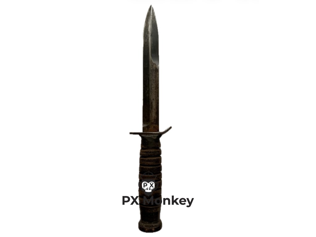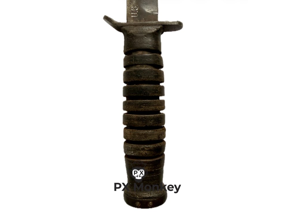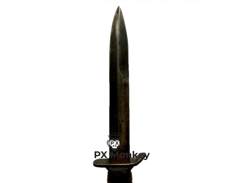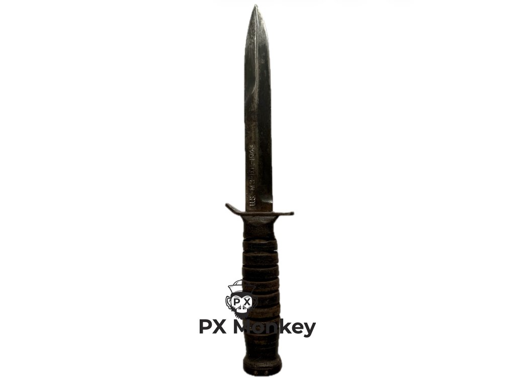 US M3 Trench Knife (1943) – Utica (U.C.) – Blade Marked + M6 Leather Scabbard BarWood