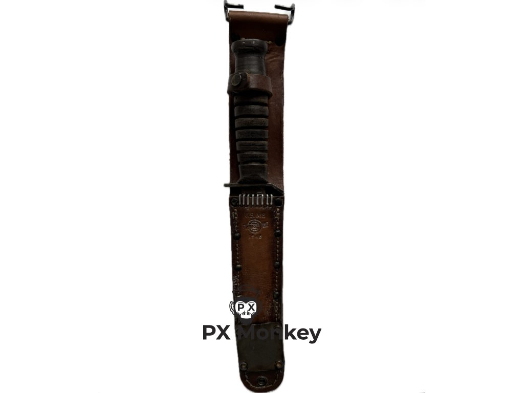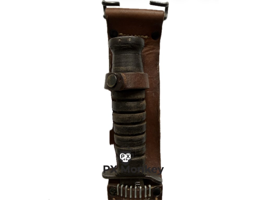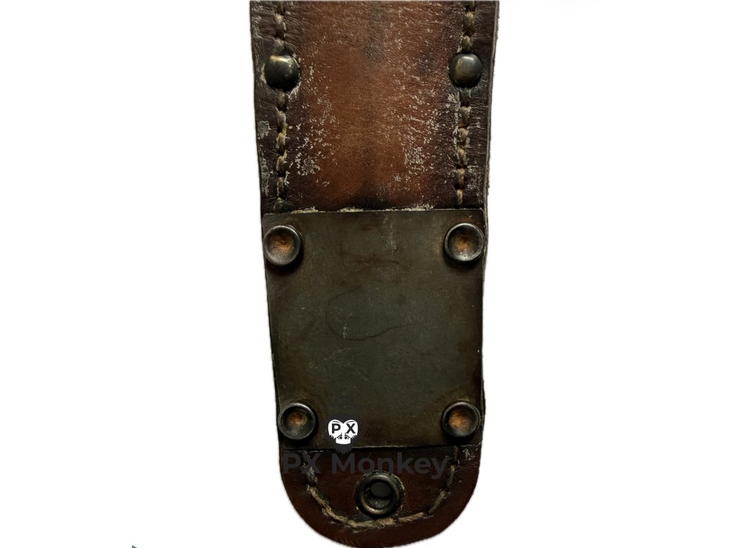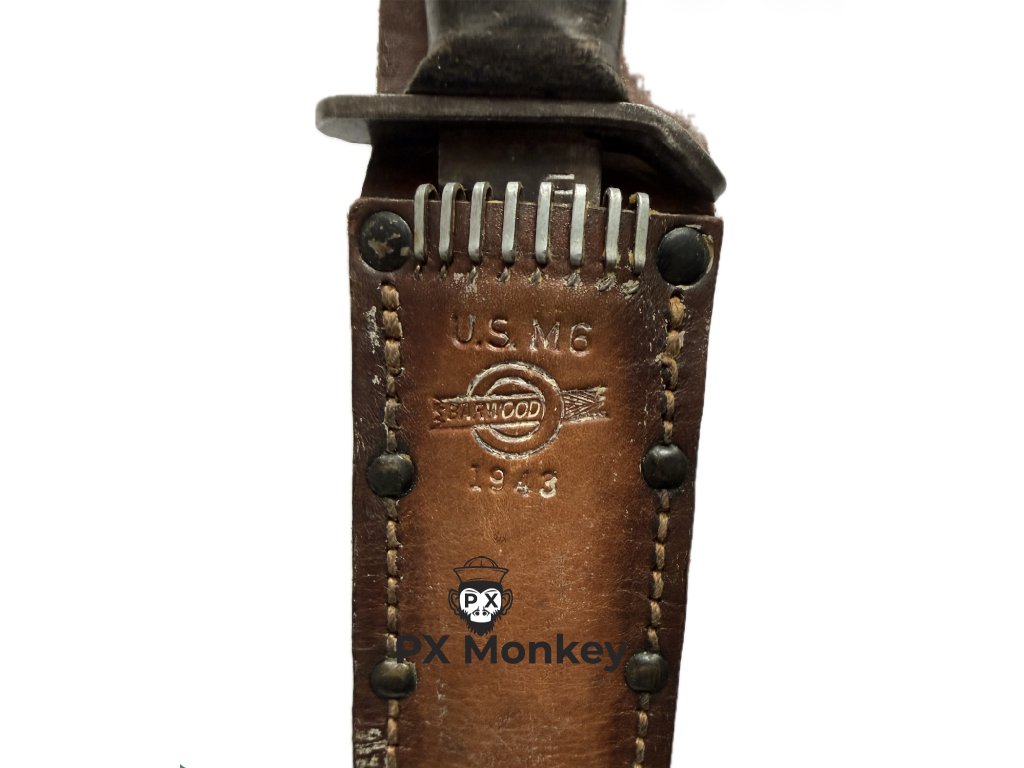 Co činí tento kus výjimečným, je jeho kompletnost a stav. Nůž je osazen v původní kožené pochvě M6 (výrobce Barwood), která byla standardem pouze v rané fázi války, než byla nahrazena laminátovými modely. Najít kůži M6 v takto zachovalém stavu je dnes velmi obtížné.