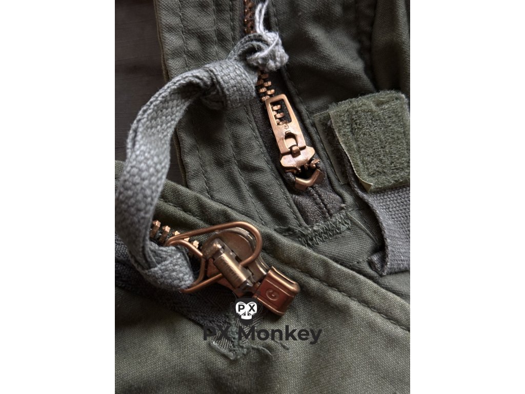 Nabízíme k prodeji naprostou sběratelskou klasiku – originální polní bundu US Army M65 (Coat, Cold Weather, Field)v barvě OG-107. Nejedná se o novodobou kopii, ale o poctivý armádní originál z kontraktu DLA100-81-C-2550 z roku 1981, vyrobený vysoce ceněnou společností SO-SEW STYLES, INC.. Bunda je v absolutně nenošeném stavu (NOS - New Old Stock). Látka je tuhá a barva sytá. Obrovským tahákem pro sběratele jsou původní masivní mosazné zipy značky GENERAL (hlavní zip i zip límce), které fungují naprosto hladce. Specifikum tohoto kusu: Vlivem dlouhodobého skladování na slunci došlo k unikátnímu vyšisování (zesvětlení) látky na pravém rukávu. Tato přirozená patina dodává bundě neopakovatelný charakter, který z ní činí originální módní i sběratelský kousek. Bunda má klasické 4 přední kapsy na druky, stahování v pase a ve spodním lemu a skrytou kapuci v límci. Foto na figuríně je vytvořené pomocí AI a je pouze ilustrativní. Ostatní fotky jsou autentické a odpovídají přesně nabízené bundě. Stav: Nenošená uloženka (NOS), vyšisovaný pravý rukáv, plně funkční.