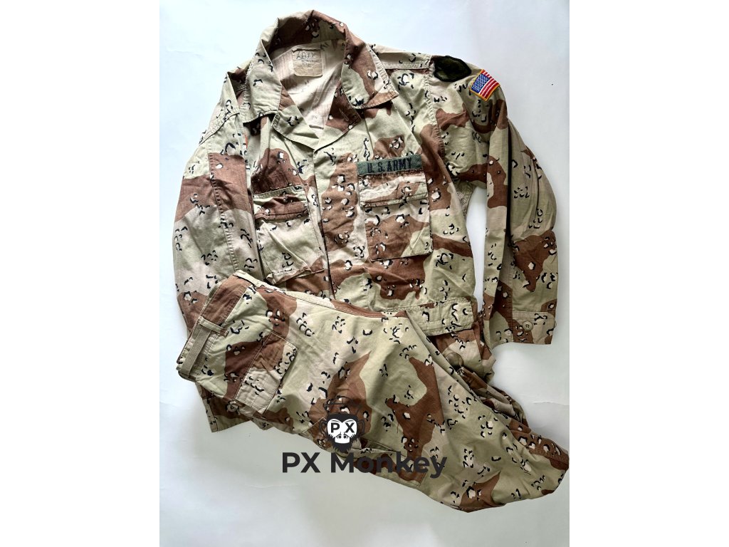 Historie (Provenance): Uniforma je osazena původními nášivkami: US Flag, US ARMY, jmenovkou, domovenkou 25th Infantry Division ("Tropic Lightning") a vzácnou oranžovou nášivkou mise MFO (Multinational Force & Observers). Právě vojáci na Sinaji často testovali výstroj pro nadcházející konflikty na Blízkém východě.