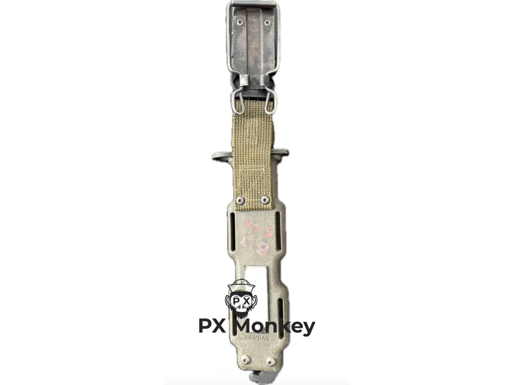 Výrobce: Čepel je značena M9 / LANCAY / USA. Absence pomlčky v názvu a typ písma řadí nůž do rané výroby.