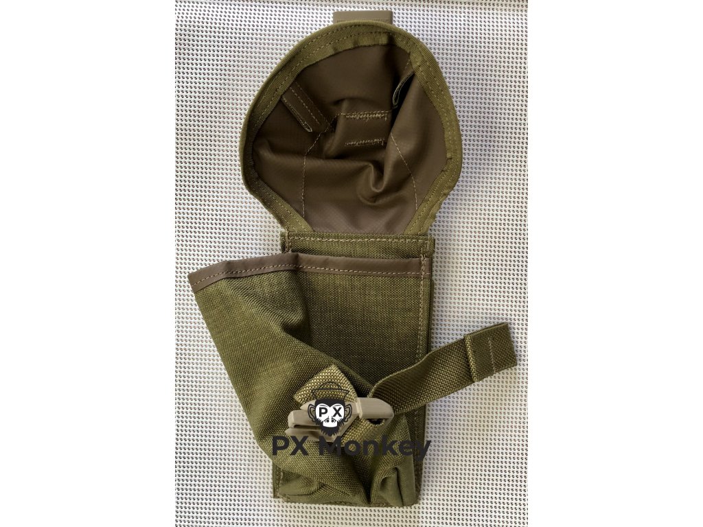 Uchycení: Zadní strana je vybavena systémem poutek na suchý zip a druky, které obepnou opasek. Není kompatibilní s MOLLE, je určena pro Duty Belt.
