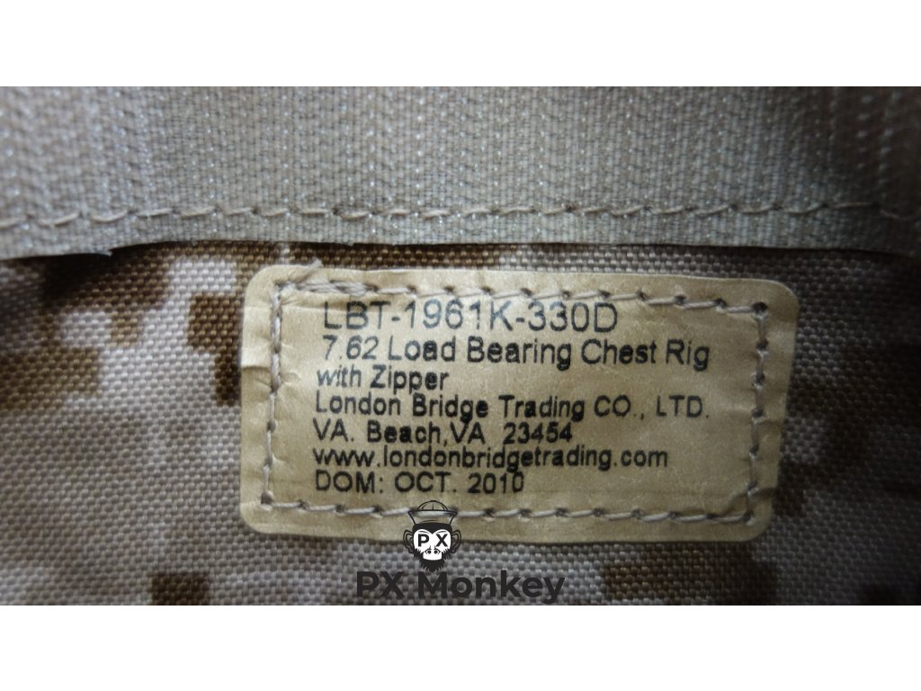 Chest rig na zásobníky do zbraní ráže 7,62 (např. Heavy SCAR) od firmy London Bridge Trading v maskování AOR 1. Rok výroby 2010. Perfektní stav.