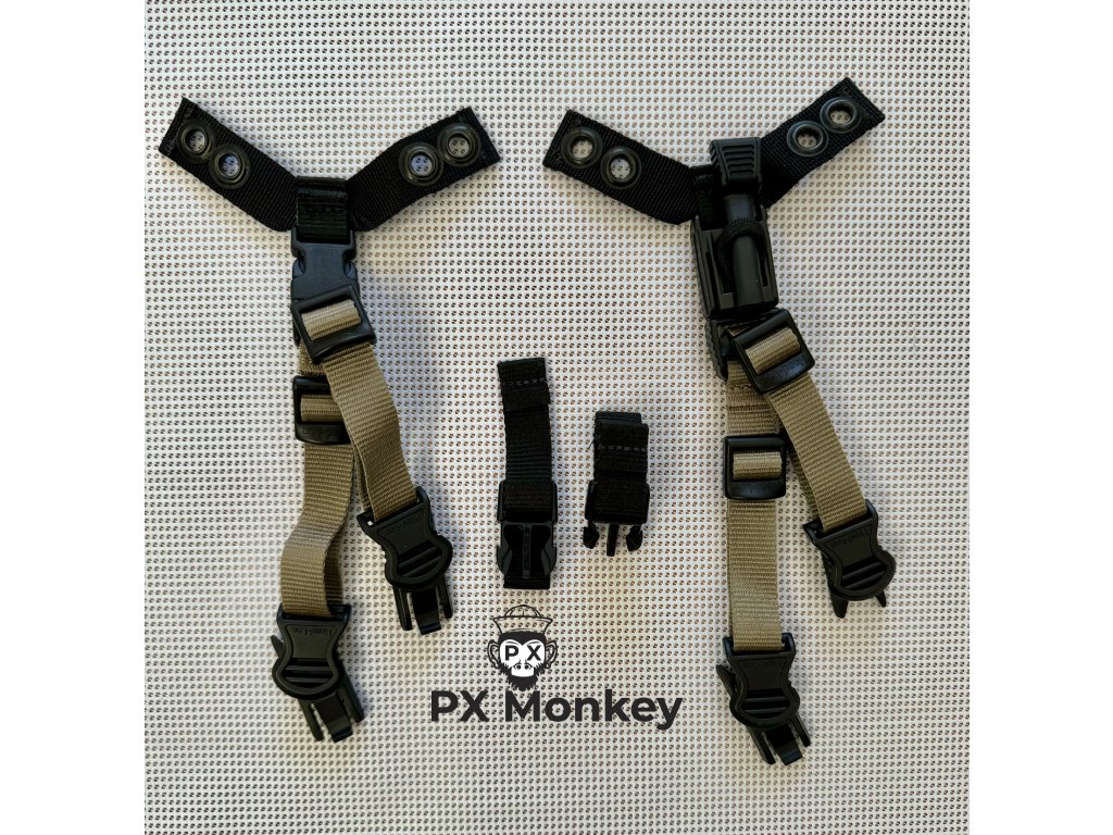 Nepoužitý set popruhů OpsCore k helmám typu ACH pro připojení respirátor Carleton Phantom nebo dýchacímu přístroji Para-Flite PHAOS.