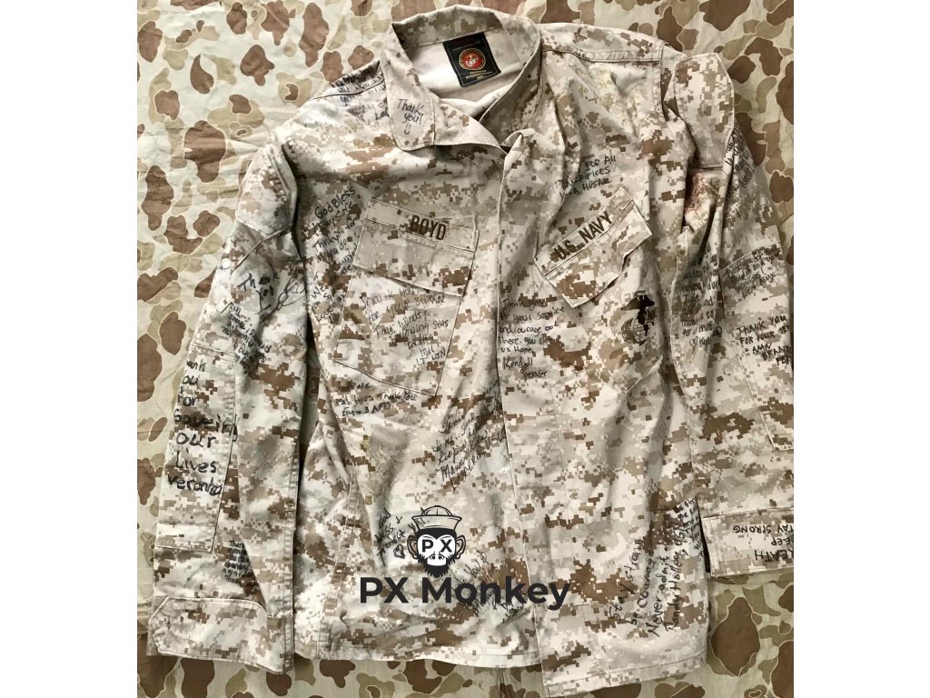 Památeční blůza USN Corpsman. Velikost medium regular. Blůza je popsaná vzkazy od spolubojovníků.