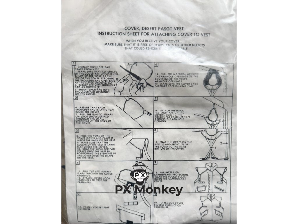 Pro sběratele operace Desert Storm a milovníky "čokoládového" maskování je toto povinná položka. Jedná se o bavlněný potah, který se navlékal na standardní olivovou vestu PASGT, aby ji maskoval v pouštním prostředí.