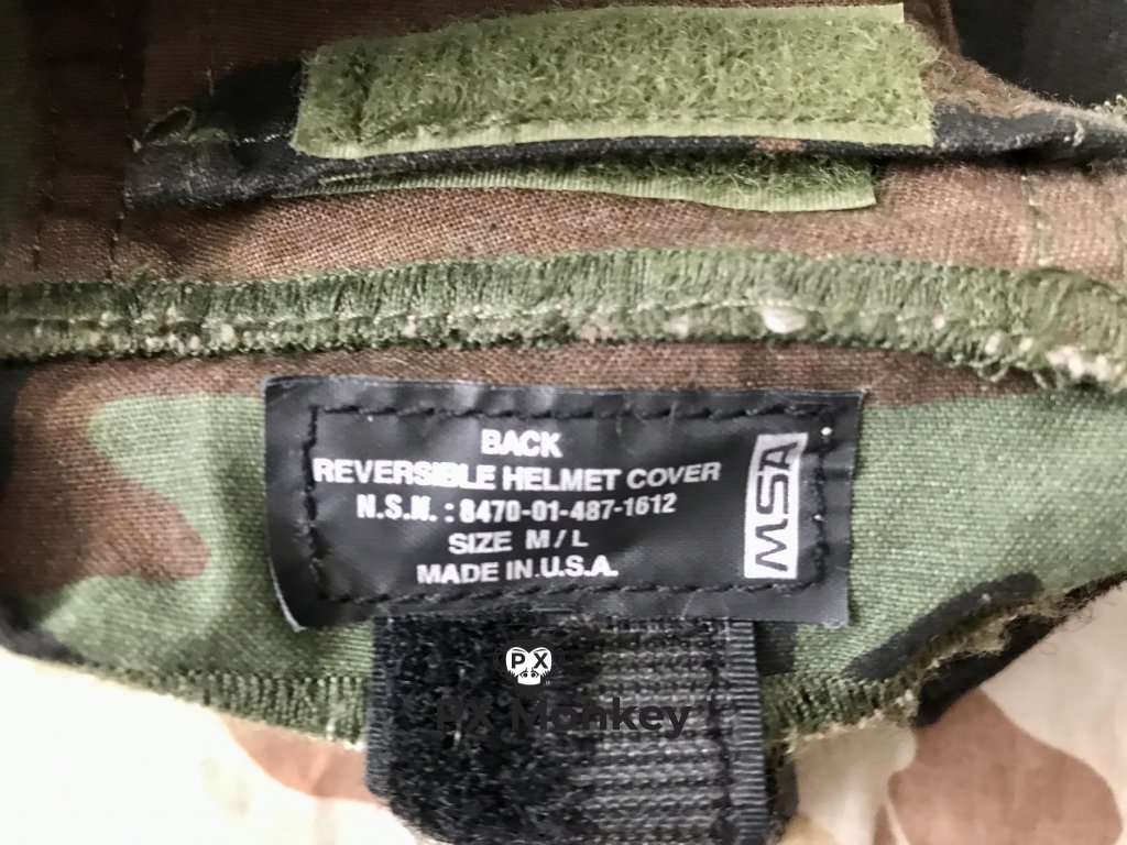 Potah na helmu MICH. Z jedné strany je maskování Woodland a z druhé 3D. Výrobce MSA. Pěkný stav.