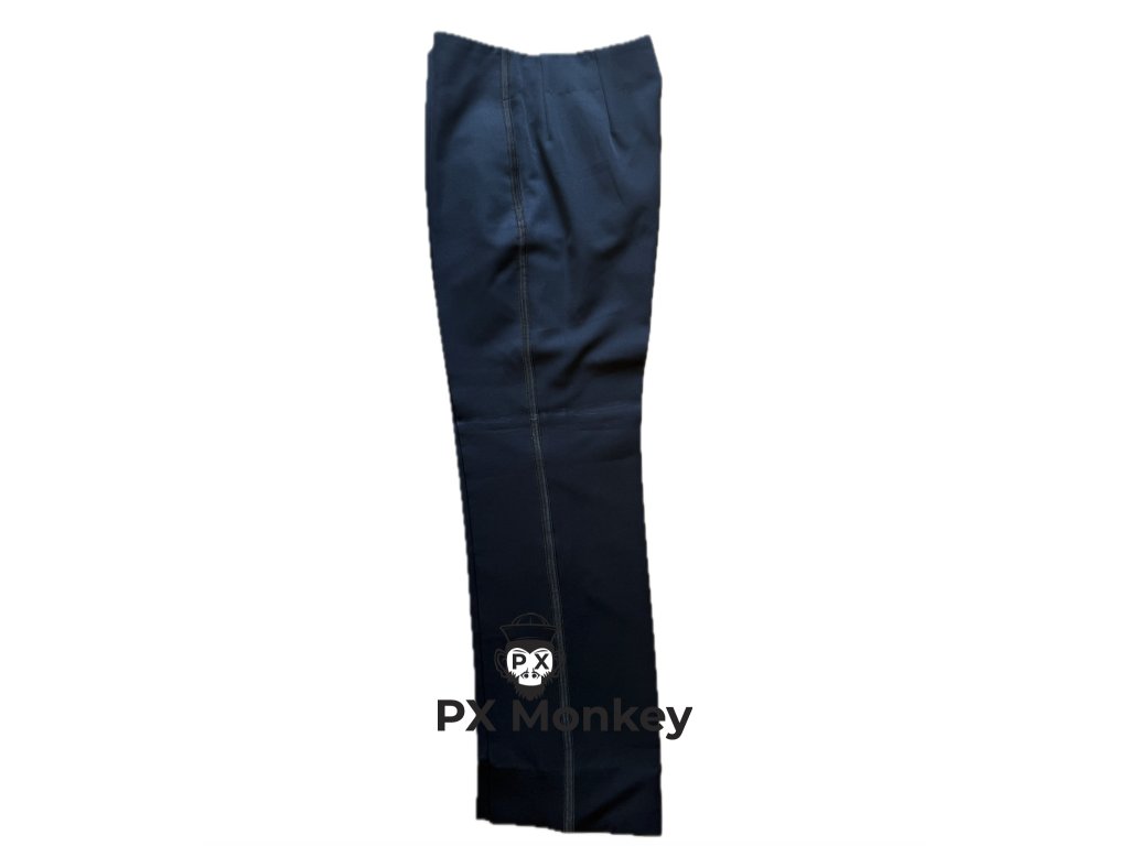 Kalhoty a Cummerbund: Set doplňují tmavě modré společenské kalhoty s vysokým pasem a decentním černým důstojnickým lampasem. Nechybí ani předpisový šarlatově červený pás (cummerbund) a černý motýlek.