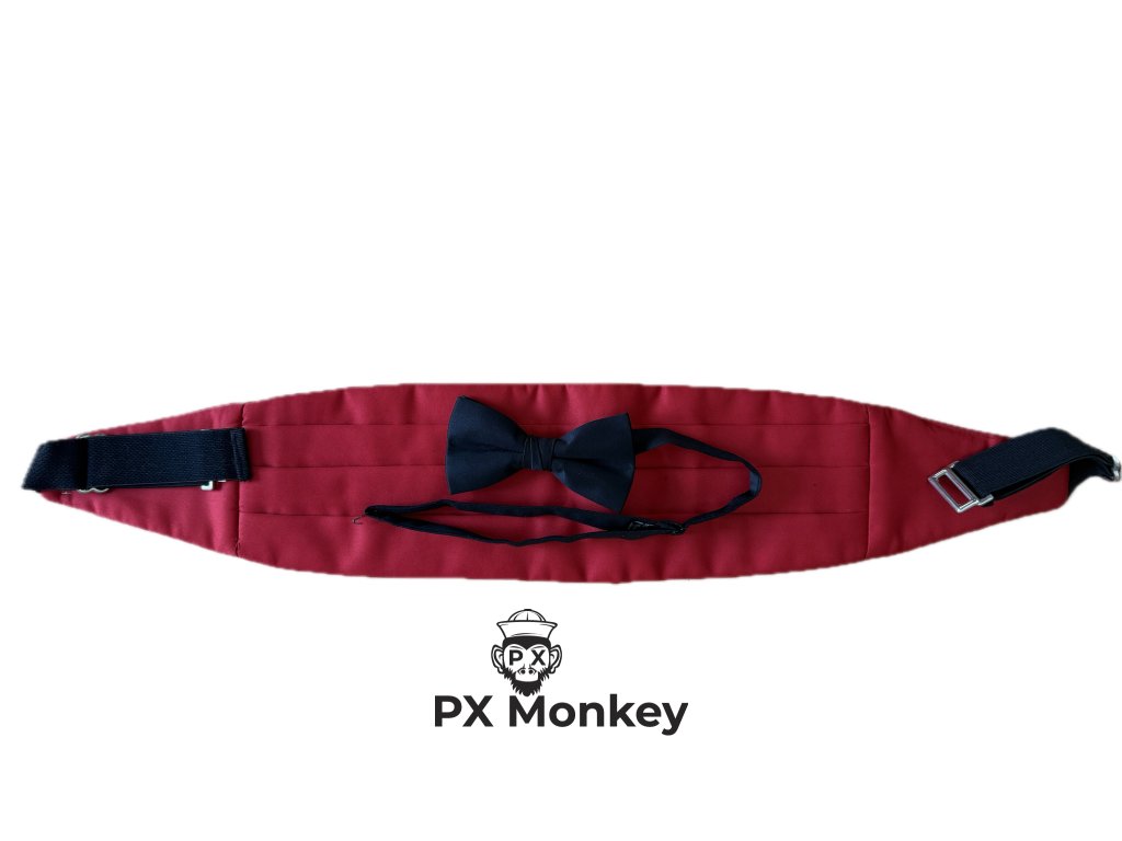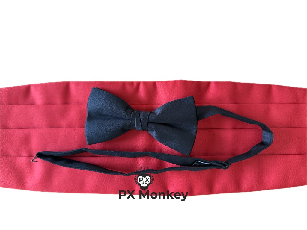 Obsah setu: Sako, kalhoty, košile, manžetové knoflíky, cummerbund, motýlek