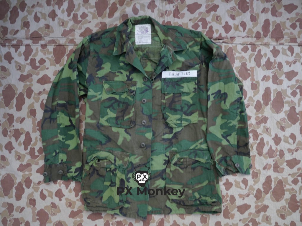 Velmi zajímavá a pěkná USMC blůza ve střihu RDF maskování Green dominant. Velikost Small-Regular. Nad kapsou a na zádech je jméno vlastníka na bílém podkladu z Oficers Candidate Course (OCC). Kontrakt DLA-80-C-2295.