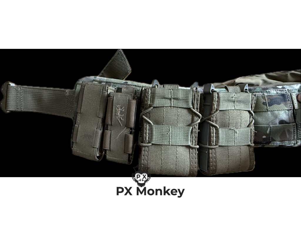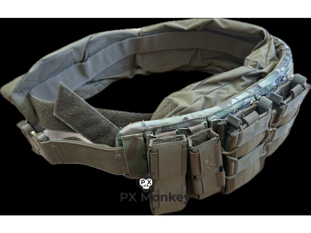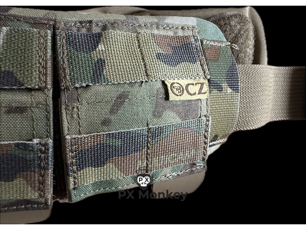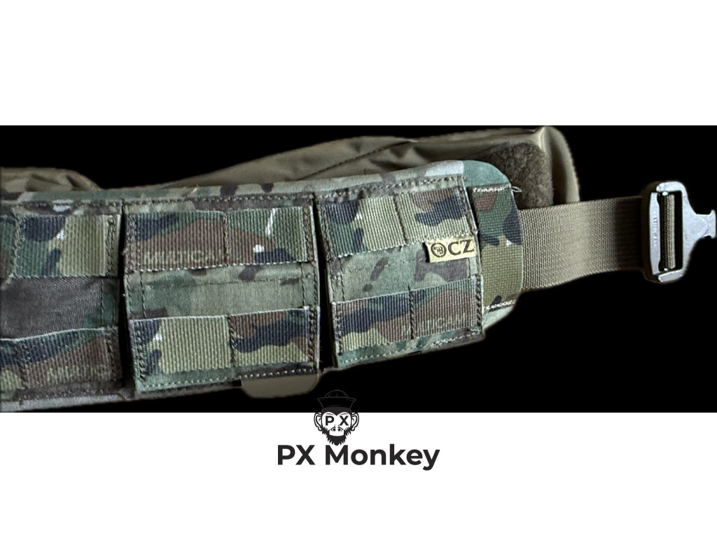 Lehce použitý Battle Belt CZ/4M. Maskování Multicam. Na opasku jsou dvě pouzdra na zásobník do pistole od Tasmanian Tiger a dvě pouzdra na zásobník do M4.