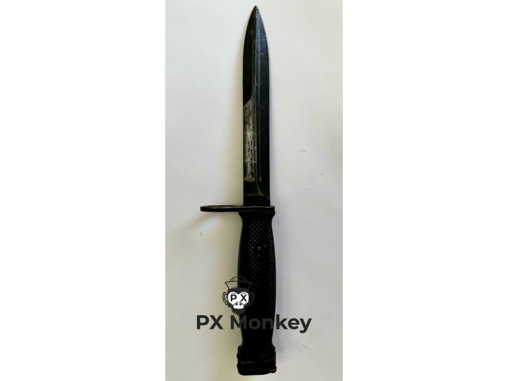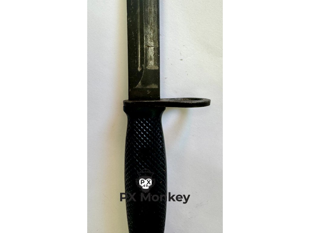 Bajonet M7 Colt se zkrácenou záštitou. Bajonet byl navržen tak, aby mohl být nasazen na M-